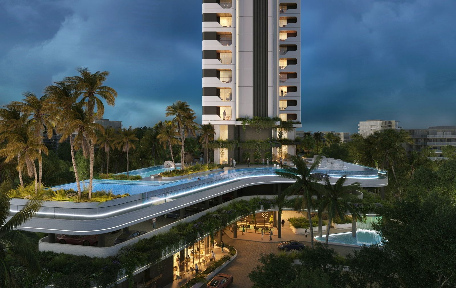 Rich amenity palette: high‑end clubhouse, infinity pool, jacuzzi, landscaped gardens, sport courts, kids zone, smart home features and more than 20 lifestyle amenities.
