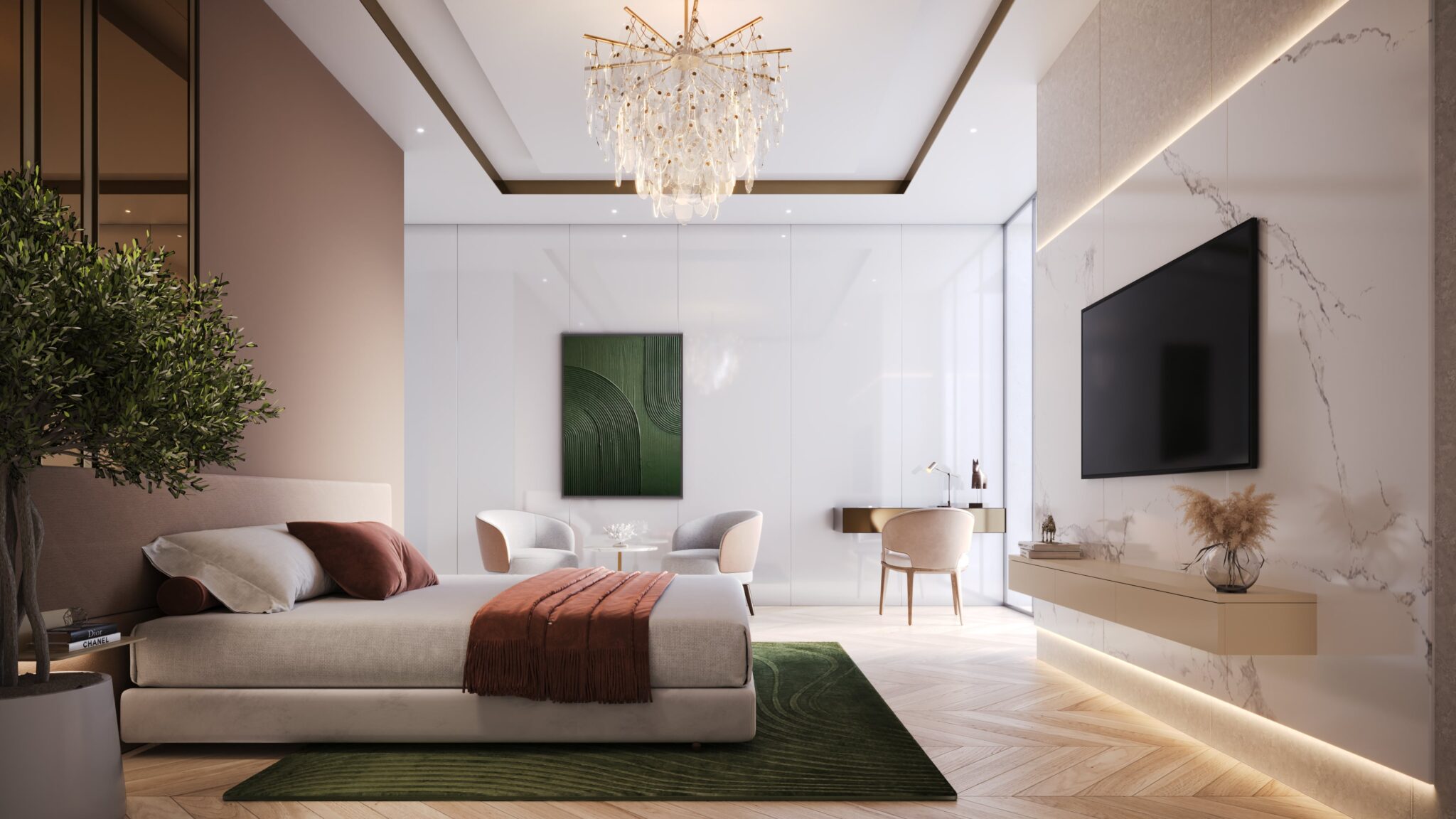 Smart home features & premium specifications: Smart home automation (e.g., by Schneider), VRV/VRF air‑conditioning, double‑glazed windows, Italian marble flooring.